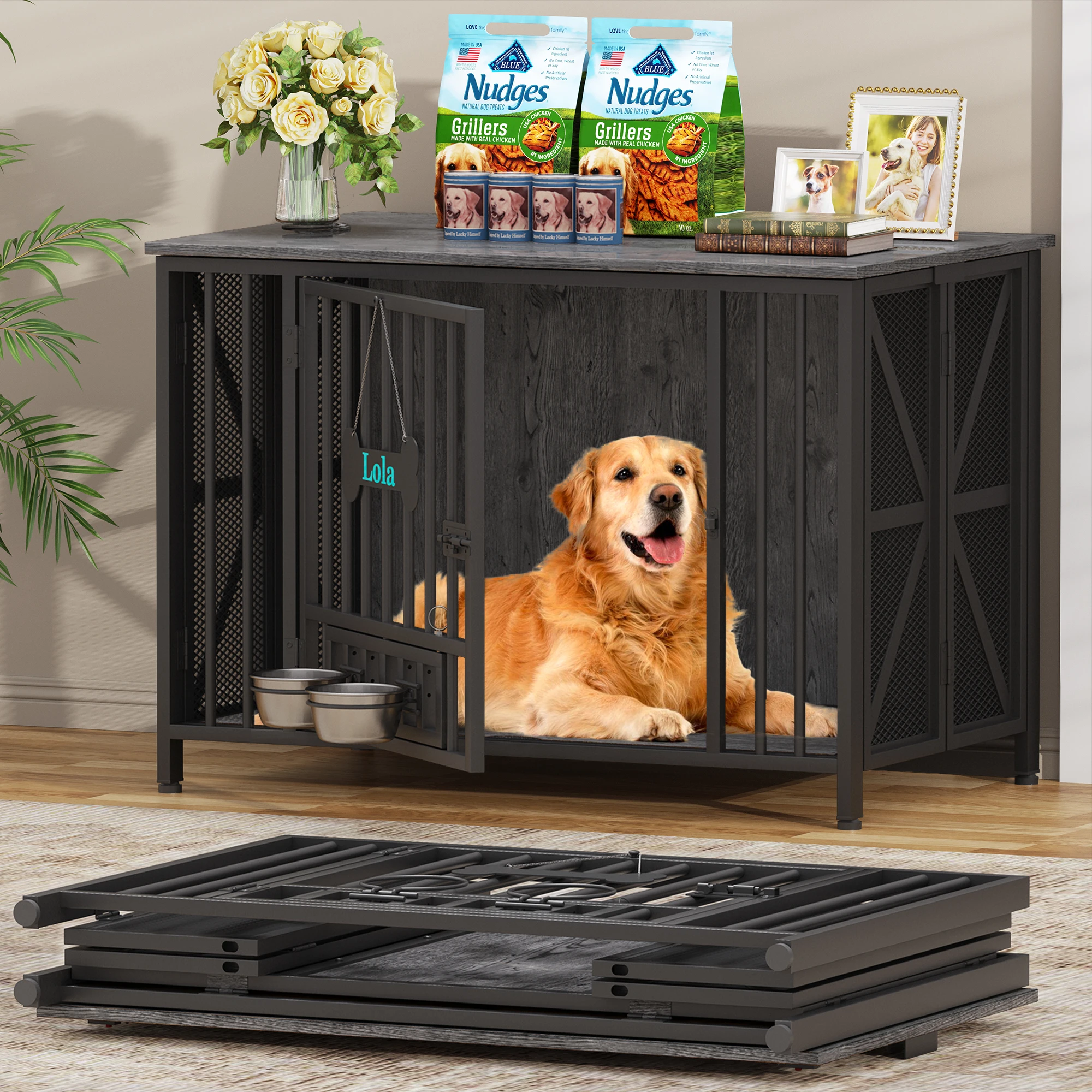 With an assembly-free design, it’s ready to use right out of the box—no tools or hassle required. The foldable structure makes storage and transport easy, while the included tag and dog bowls add extra convenience for everyday use.