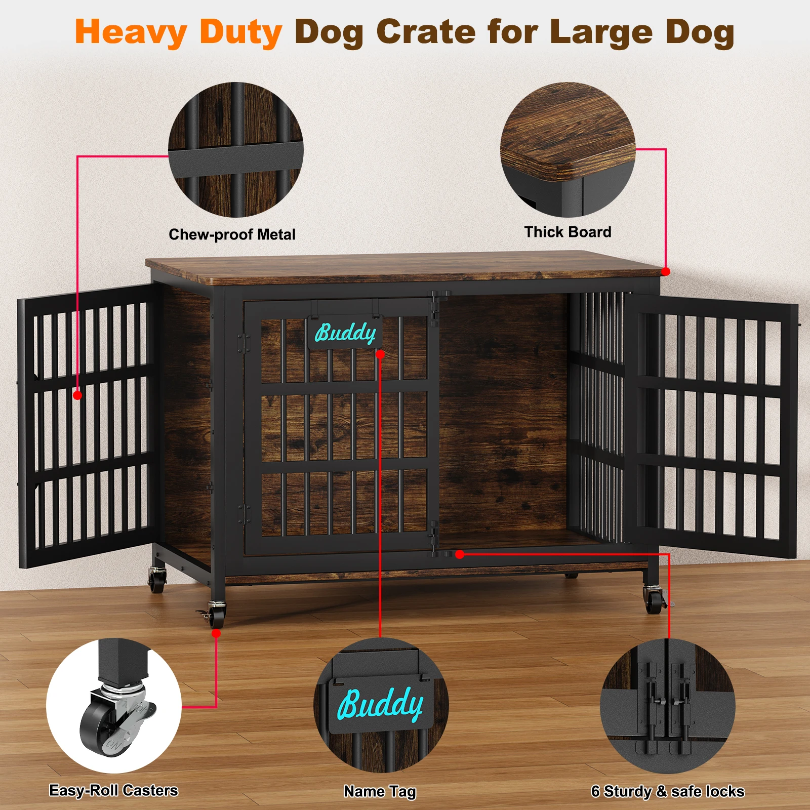 Upgrade your home and your pet’s comfort with the Dog Crate Furniture with Casters. Designed for medium and large dogs, this heavy-duty indoor kennel doubles as a stylish piece of furniture—perfect as a TV stand or bedside table.